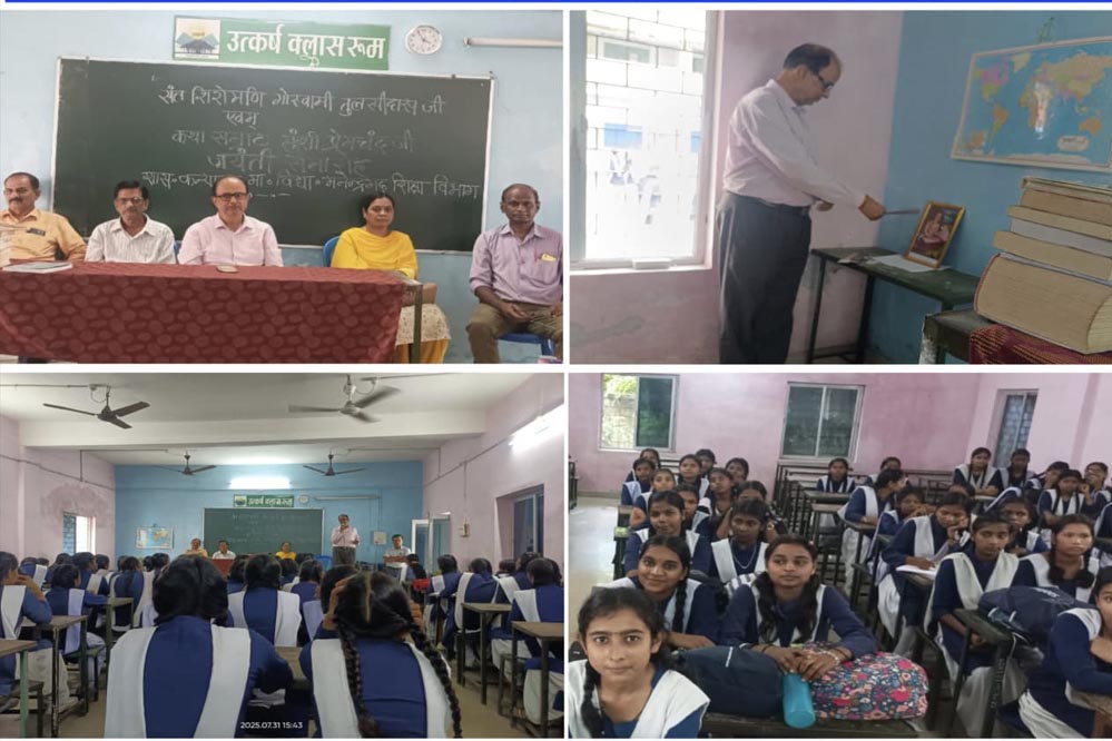 तुलसीदास व प्रेमचंद जयंती मनाकर दी महान साहित्यकारों को श्रद्धांजलि तुलसीदास और प्रेमचंद जयंती पर साहित्य साधकों ने दी श्रद्धांजलि, याद किए अमर रचनाकार शासकीय कन्या उच्चतर माध्यमिक विद्यालय शिक्षा विभाग मनेन्द्रगढ़ में साहित्यिक समागम मनेन्द्रगढ़  साहित्य जगत की दो महान विभूतियों—गोस्वामी तुलसीदास और मुंशी प्रेमचंद की जयंती पर शासकीय कन्या उच्चतर माध्यमिक विद्यालय, शिक्षा विभाग मनेन्द्रगढ़ में एक भव्य साहित्यिक आयोजन संपन्न हुआ। इस अवसर पर विद्यालय परिवार ने श्रद्धा, सम्मान और प्रेरणा के साथ इन दोनों महापुरुषों को स्मरण किया और उनके कृतित्व व व्यक्तित्व पर विस्तृत चर्चा की। कार्यक्रम की अध्यक्षता विद्यालय के प्राचार्य  सत्येन्द्र सिंह ने की। इस अवसर पर विशेष रूप से श्रीमती अर्चना वैष्णव, राजीव सोनी, टी. विजय गोपाल राव, रामरक्षा द्विवेदी, जसवंत डहरिया, श्रीमती अंजली सिंह, एवं श्रीमती कंचन त्रिपाठी उपस्थित रहे। साहित्य से संस्कार तक की प्रेरणा-कार्यक्रम की शुरुआत दीप प्रज्वलन और सरस्वती वंदना से हुई। तत्पश्चात विद्यालय प्राचार्य  सत्येन्द्र सिंह ने गोस्वामी तुलसीदास की साहित्यिक विरासत पर प्रकाश डालते हुए कहा—"तुलसीदास न केवल एक कवि थे, बल्कि भारतीय समाज की आध्यात्मिक चेतना के मार्गदर्शक भी थे। रामचरितमानस के माध्यम से उन्होंने धर्म, भक्ति, मर्यादा और नैतिकता को जन-जन तक पहुँचाया।"उन्होंने छात्रों से अपील की कि वे तुलसीदास जैसे संत कवियों के आदर्शों को आत्मसात करें। वहीं व्याख्याता श्रीमती अर्चना वैष्णव ने मुंशी प्रेमचंद के यथार्थवादी साहित्य पर बोलते हुए कहा कि "प्रेमचंद ने कलम से क्रांति की, उन्होंने किसानों, मजदूरों और आम जनजीवन की पीड़ा को शब्दों में ढालकर साहित्य को जनमुखी बनाया। ‘गोदान’, ‘निर्मला’ जैसी रचनाएँ आज भी उतनी ही प्रासंगिक हैं।" साहित्यिक प्रस्तुतियाँ और प्रेरक वक्तव्य छात्राओं द्वारा तुलसीदास जी की चौपाइयों का वाचन, प्रेमचंद की कहानियों पर लघुनाटिका, और भजन प्रस्तुति ने माहौल को पूरी तरह भक्ति और प्रेरणा से भर दिया। शिक्षकों द्वारा दोनों साहित्यकारों की रचनाओं से प्रेरित संस्मरण भी साझा किए गए। टी. विजय गोपाल राव एवं रामरक्षा द्विवेदी ने कहा कि"भविष्य के नागरिकों को तुलसी और प्रेमचंद जैसे चरित्र निर्माताओं से प्रेरणा लेनी चाहिए।" वहीं  राजीव सोनी और श्रीमती अंजली सिंह ने बच्चों से आग्रह किया कि वे साहित्य को केवल विषय न मानें, बल्कि जीवन-दर्शन के रूप में अपनाएं। सम्मान और समापन अंत में प्राचार्य श्री सिंह द्वारा सभी प्रतिभागी छात्राओं को प्रशस्ति पत्र देकर सम्मानित किया गया। कार्यक्रम का समापन राष्ट्रगान के साथ हु