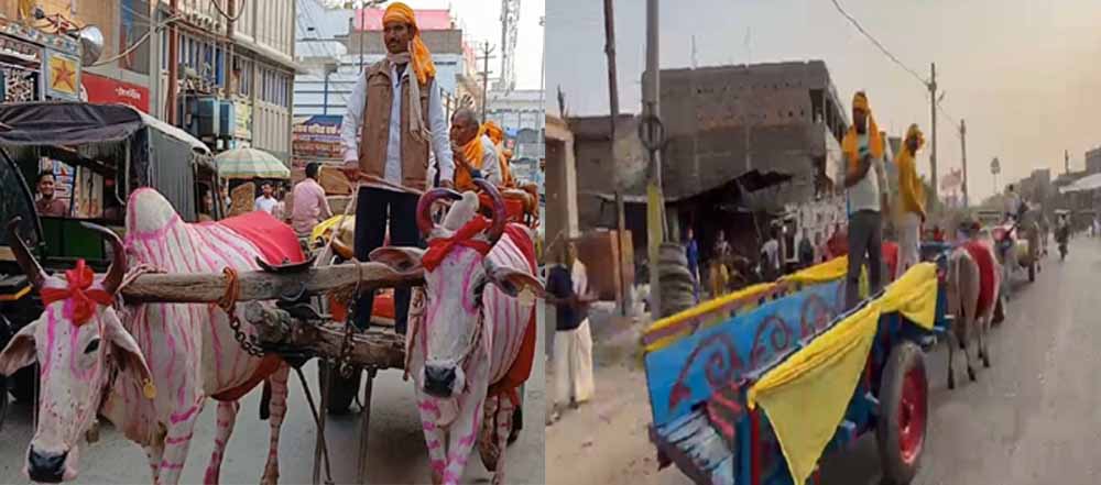 शहर की सड़कों पर बुधवार की शाम कुछ अलग ही था। न डीजे की कानफोड़ू आवाज, न रोशनी की चकाचौंध, न लग्जरी गाड़ियों की कतार। अगर कुछ था तो बैलों की सधी हुई चाल, लकड़ी की बैलगाड़ियों की मद्धिम चरमराहट और लोकगीतों की कोमल तान। यह नजारा देख हर राहगीर ठिठक गया, मोबाइल कैमरे निकल आए और एक ही सवाल गूंजने लगा, अब भला बैलगाड़ी से भी कोई बरात जाता है?