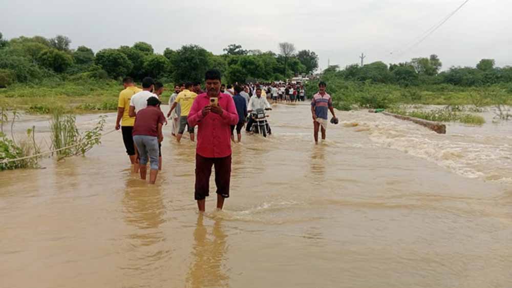जयपुर राजस्थान में मानसून एक बार फिर रौद्र रूप में नजर आ रहा है। पश्चिमी मध्य प्रदेश और पूर्वी राजस्थान की सीमा पर बने वेलमार्क लो-प्रेशर सिस्टम के कारण राज्य के दक्षिणी और पश्चिमी जिलों में भारी बारिश हो रही है। मौसम विभाग ने शनिवार को उदयपुर, डूंगरपुर, बांसवाड़ा और प्रतापगढ़ में रेड अलर्ट जारी किया है, जबकि चित्तौड़गढ़, राजसमंद, झालावाड़, सिरोही और जालोर में ऑरेंज अलर्ट और कई अन्य जिलों में येलो अलर्ट घोषित किया गया है। राजधानी जयपुर में शुक्रवार रात भर रुक-रुक कर तेज बारिश होती रही। शहर में कई जगह मुख्य चौराहों पर सड़क धंस गई जिससे लोगों को आवा जाही में भी भारी परेशानी का सामना करना पड़ा।भीलवाड़ा में नदी-नाले उफान पर हैं और कई गांवों का संपर्क जिला मुख्यालय से टूट गया है। अजमेर में बोराज तालाब की पाल टूटने से शहर के कई इलाकों में पानी घुस गया। करीब 1000 घरों में पानी भर गया, जिससे लोगों को छतों पर जाकर जान बचानी पड़ी। मकानों को भी नुकसान पहुंचा है। धौलपुर में चंबल नदी खतरे के निशान से तीन मीटर ऊपर बह रही है, वहीं दौसा के लालसोट में एनीकट की पक्की दीवार टूटने से जलप्रलय जैसे हालात हैं। उदयपुर में सेल्फी लेते समय एक युवक उदयसागर झील में गिर गया। मौसम विभाग के अनुसार मानसून ट्रफ फिलहाल जैसलमेर से बंगाल की खाड़ी तक सक्रिय है, जिससे 8 सितंबर तक उदयपुर, जोधपुर, कोटा और आसपास के जिलों में भारी से अति भारी बारिश जारी रहने की संभावना है। प्रशासन ने प्रभावित जिलों में स्कूलों और आंगनबाड़ी केंद्रों में छुट्टियां घोषित कर दी हैं और बचाव दल अलर्ट पर हैं। जनता से अपील की गई है कि वे अनावश्यक रूप से जलमग्न इलाकों में न जाएं। 1155 व्यक्तियों का सकुशल रेस्क्यू एनडीआरएफ, एसडीआरएफ और सिविल डिफेंस की टीमें दिन-रात सक्रिय रहकर प्रभावित क्षेत्रों में लोगों की सुरक्षा सुनिश्चित कर रही हैं। मानसून के दौरान एनडीआरएफ, एसडीआरएफ और सिविल डिफेंस की टीमों ने अब तक 1155 व्यक्तियों को रेस्क्यू किया है। वर्तमान में पूरे राज्य में एसडीआरएफ की 62 टीमें, एनडीआरएफ की 7 टीमें और सिविल डिफेंस की टीमें कार्यरत हैं। साथ ही, 21,000 नागरिक सुरक्षा स्वयंसेवकों की तैनाती की गई। वायुसेना के हेलिकॉप्टर से जलमग्न क्षेत्रों से लोगों को एयरलिफ्ट कर सुरक्षित आश्रय तक पहुंचाया भी जा रहा है। राहत शिविरों में भोजन, स्वच्छ जल और दवाइयों की व्यवस्था सुनिश्चित की जा रही है। फसल नुकसान के आकलन के लिए गिरदावरी प्रदेश में खरीफ 2025 में अतिवृष्टि से हुए फसल नुकसान के आकलन के लिए 1 अगस्त, 2025 से गिरदावरी शुरू की गई है। सरकार का कहना है कि गिरदावरी के उपरांत जिन जिलों में 33 प्रतिशत या इससे अधिक फसल खराब हुई है, वहां प्रभावित किसानों को केन्द्र सरकार 