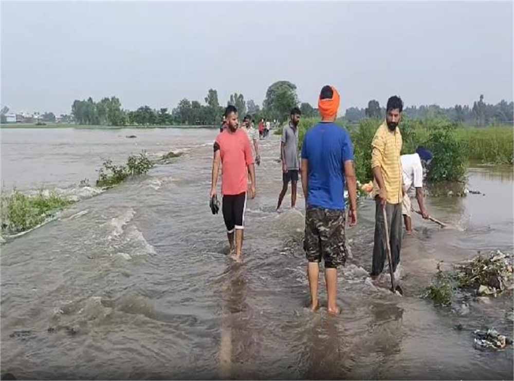 पठानकोट पंजाब में बारिश और डैमों से लगातार छोड़े जा रहे पानी के कारण 7 जिले बाढ़ की मार झेल रहे हैं। बुधवार शाम रावी नदी में आए उफान के कारण पठानकोट में माधोपुर हेडवर्क्स का फ्लड गेट टूट गया। यहां 50 लोग फंस गए, जिन्हें निकालने के लिए आर्मी के हेलिकॉप्टर बुलाना पड़ा। मंगलवार-बुधवार दरम्यानी रात अचानक पानी बढ़ने से गुरदासपुर के नवोदय स्कूल में 451 स्टूडेंट्स और टीचर फंस गए थे, जिनका रेस्क्यू कर लिया गया है। पठानकोट-जम्मू हाईवे के पास नहर टूटने से पानी हाईवे के ऊपर बहने लगा। संगरूर में मुख्यमंत्री भगवंत मान का पैतृक गांव सतौज भी पानी की चपेट में है। CM भगवंत मान ने बुधवार को पठानकोट और गुरदासपुर के बाढ़ प्रभावित गांवों का दौरा किया। CM ने अपना हेलिकॉप्टर यहीं छोड़ दिया ताकि लोगों को बचाने में उसे इस्तेमाल किया जा सके। सीएम कार से वापस लौटे। पंजाब सरकार ने बाढ़ प्रभावित इलाकों में कर्मचारियों -अधिकारियों की छुट्टियां कैंसिल कर दी हैं। प्रदेश के सभी 23 जिलों में कंट्रोल रूम बनाए गए हैं। 30 अगस्त तक सभी स्कूल पहले ही बंद किए जा चुके हैं। रावी-ब्यास और सतलुज नदी का जलस्तर बढ़ने से पठानकोट, गुरदासपुर, तरनतारन, होशियारपुर, कपूरथला, फिरोजपुर और फाजिल्का जिले के 150 से अधिक गांव डूब गए हैं। यहां NDRF, SDRF और सेना को रेस्क्यू में लगाया गया है। करतारपुर साहिब कॉरिडोर के साथ-साथ पाकिस्तान में करतारपुर साहिब गुरुद्वारा परिसर में पानी भर गया है। जम्मू रीजन में भारी बारिश के बाद बिगड़े हालात को देखते हुए उत्तर रेलवे ने 45 ट्रेनें रद्द कर दी हैं। वहीं 25 से अधिक ट्रेनों को शॉर्ट-टर्मिनेट किया गया है। जम्मू-तवी, वैष्णो देवी कटरा, पठानकोट और दिल्ली रेलवे स्टेशन पर हेल्प डेस्क बनाने के अलावा हेल्पलाइन नंबर जारी किए गए हैं। मौसम विज्ञान केंद्र चंडीगढ़ ने कल प्रदेश में बारिश का कोई अलर्ट जारी नहीं किया है। लेकिन 5 जिलों पठानकोट, गुरदासपुर, होशियारपुर, रूपनगर और मोहाली में हल्की से मध्यम बारिश हो सकती है। 29, 30 और 31 अगस्त को भारी बारिश का अलर्ट जारी किया गया है। अटारी बॉर्डर जलमग्न, पाकिस्तानी पंजाब में 2 लाख लोग बेघर बॉर्डर के इस पार भी बाढ़ है और उस पार भी. पंजाब से लेकर पाकिस्तानी पंजाब तक मानसून की बारिश ने हालात बेहाल कर दिए हैं. अटारी-वाघा बॉर्डर पूरी तरह जलमग्न हो गया है, जिससे आवाजाही थम गई है और सुरक्षा चिंताएं बढ़ गई हैं. भारत के गुरदासपुर, पठानकोट और तरनतारन जैसे जिलों से लेकर पाकिस्तान के पंजाब प्रांत तक नदियां उफान पर हैं. धूसी बांध टूटने और करतारपुर कॉरिडोर के आसपास पानी भरने से कई गांव जलमग्न हो गए हैं, वहीं दोनों तरफ हजारों लोग बेघर होकर राहत शिविरों में शरण लेने को मजबूर हैं. मानसून की बारिश ने भारत और प