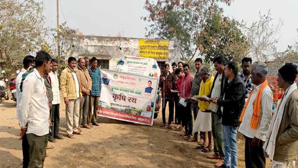 कृषि रथ से किसानों को फसलों में संतुलित उर्वरक और नवीन तकनीकों की जानकारी दी गई