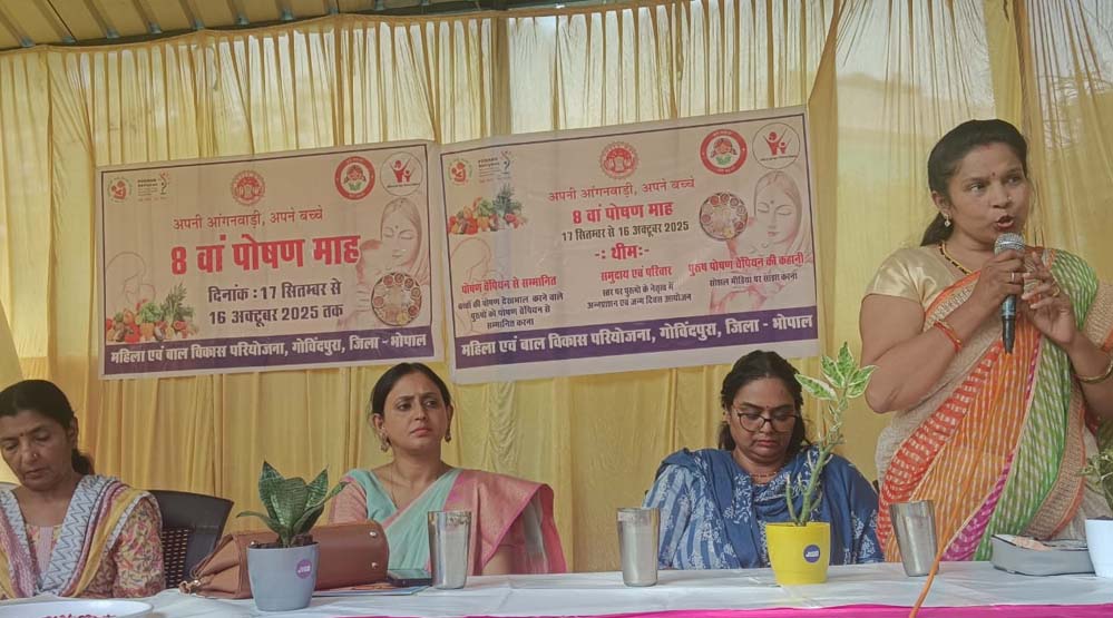 गोविंदपुरा में धूमधाम से मना पोषण माह, पुरुष बने पोषण चैंपियन अन्नप्राशन, जन्मदिन का जश्न और क्विज़ प्रतियोगिता ने बढ़ाया उत्साह भोपाल गोविंदपुरा परियोजना के इंद्रपुरी सेक्टर के आंगनबाड़ी केंद्र क्रमांक 549 में सोमवार को 8वें पोषण माह की गतिविधियों का रंगारंग आयोजन किया गया। इस मौके पर कार्यक्रम की थीम रही – “बच्चों की पोषण देखभाल करने वाले पुरुषों को पोषण चैंपियन से सम्मानित करना और उनकी कहानियां साझा करना।” कार्यक्रम का शुभारंभ परियोजना अधिकारी श्रीमती शुभा श्रीवास्तव ने दीप प्रज्वलन और सरस्वती पूजन से किया। इसके बाद माहौल और भी जीवंत हुआ जब सामाजिक संस्थाओं से जुड़ीं श्रीमती किरण शर्मा (सकारात्मक सोच संस्था), श्रीमती रेणु (आरंभ संस्था) और श्रीमती रेखा श्रीधर (मीत संस्था) ने मंच से महिलाओं और पुरुषों को संबोधित किया। उन्होंने परिवार और समाज में पोषण संबंधी जागरूकता पर जोर देते हुए कहा कि “पोषण केवल महिलाओं की जिम्मेदारी नहीं, पुरुष भी इसमें सक्रिय भूमिका निभाएं।” सेक्टर सुपरवाइजर श्रीमती अनामिका पटेल ने उपस्थित लोगों को पोषण माह की रूपरेखा और उद्देश्य समझाए। वहीं श्रीमती नीति सक्सेना ने पुरुष प्रतिभागियों के लिए क्विज़ प्रतियोगिता का आयोजन किया। सवालों के जवाब देने में पुरुषों का उत्साह देखते ही बनता था। थीम के अनुरूप कार्यक्रम में अन्नप्राशन और जन्मदिन समारोह भी रखा गया। खास बात यह रही कि बच्चों के जन्मदिन का केक टीएचआर (टेक होम राशन) से तैयार किया गया था, जिसे काटकर पूरे उल्लास के साथ बच्चों का जन्मदिन मनाया गया। इसके अलावा आंगनबाड़ी कार्यकर्ताओं ने पोषण व्यंजन प्रदर्शनी भी सजाई। प्रतिभागियों ने इन पौष्टिक व्यंजनों का स्वाद लिया और उनकी महत्ता समझी। अंत में सभी अतिथियों और प्रतिभागियों का स्वागत स्वल्पाहार के साथ किया गया। पूरे कार्यक्रम में माहौल उत्साह और जागरूकता से सराबोर रहा।