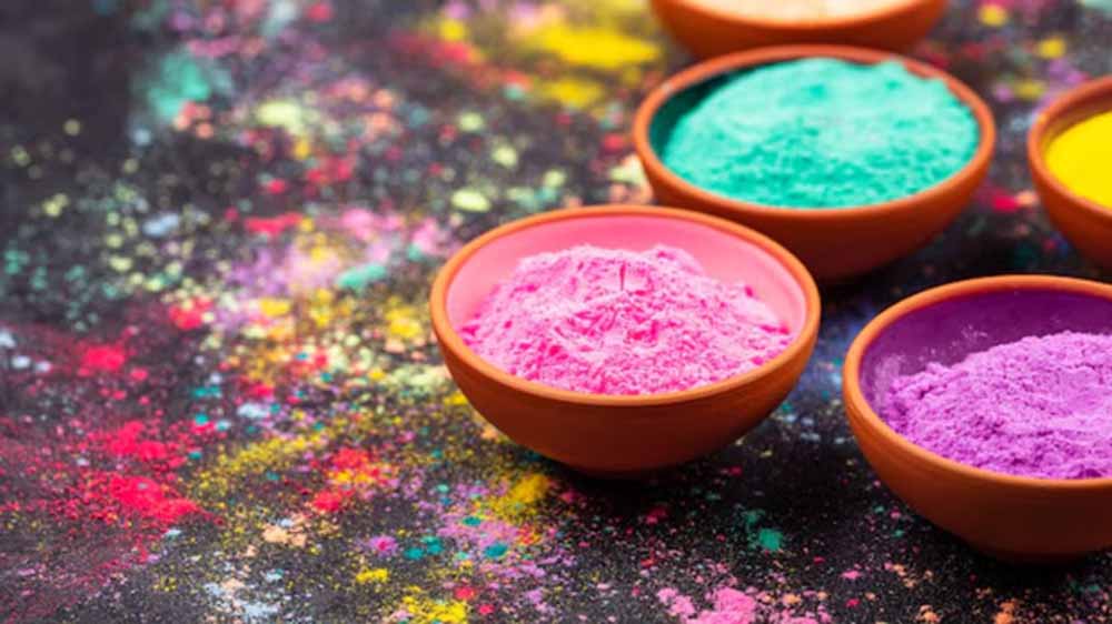 विभिन्न रंगों और आकर्षक पैकेजिंग के साथ समूह द्वारा निर्मित हर्बल गुलाल