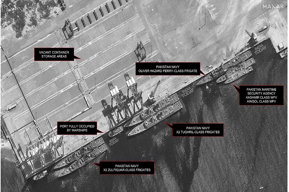 नई दिल्ली 6 और 7 मई की रात को भारतीय हमलों ने पाकिस्तान और पीओजेके में नौ आतंकी ठिकानों को निशाना बनाया. इसके बाद नई दिल्ली ने इस्लामाबाद के डीजीएमओ को सूचित किया कि उसका मिशन पूरा हो गया. हालांकि, पाकिस्तान के नेतृत्व ने कड़ी जवाबी कार्रवाई की बात कही. ओपन-सोर्स इंटेलिजेंस (OSINT) टीम द्वारा विश्लेषित कराची और ग्वादर बंदरगाहों की सैटेलाइट तस्वीरों से पता चलता है कि ऑपरेशन सिंदूर के दौरान पाकिस्तान की नौसेना का रुख रक्षात्मक था. संघर्ष के चरम पर, पाक नौसेना (PN) के युद्धपोतों को कराची के नौसैनिक गोदाम से हटाकर व्यावसायिक टर्मिनलों पर लाया गया, जैसा कि सैटेलाइट तस्वीरों में दिखाई देता है. इस बीच, अन्य युद्धपोत ग्वादर के पश्चिमी बंदरगाह पर शरण लेते नजर आए, जो ईरान की सीमा से महज 100 किमी दूर है, बजाय इसके कि वे भारत की ओर पूर्व की ओर बढ़ें. 8 मई की कराची बंदरगाह की सैटेलाइट तस्वीर बताती है कि पाक नौसेना के युद्धपोत व्यावसायिक बंदरगाह और कंटेनर टर्मिनल पर खड़े थे. शीर्ष सैन्य विशेषज्ञों ने तनाव के दौरान पाकिस्तान नौसेना की तैयारियों पर सवाल उठाए हैं. सेवानिवृत्त वाइस एडमिरल एस.सी. सुरेश बंगारा, जो दक्षिणी नौसेना कमान के पूर्व कमांडर-इन-चीफ रहे और 1971 में कराची बंदरगाह पर हुए साहसिक हमले में शामिल थे. उन्होंने कहा किचूंकि हमारा आतंकी ढांचे पर 7 मई को हमला हुआ था और पाकिस्तान की तीनों सेनाओं को पूरी तरह सतर्क रहना चाहिए था, फिर भी उनके अग्रिम युद्धपोत बंदरगाह पर दिखना उनकी कम ऑपरेशनल तैयारियों को दर्शाता है. उन्होंने आगे एक पैटर्न की ओर इशारा किया, जिसमें पाक नौसेना के जहाज व्यावसायिक टर्मिनलों पर खड़े होते हैं और ऑपरेशन के दौरान व्यावसायिक विमानों की आड़ लेते हैं. उन्हें व्यावसायिक बंदरगाह क्षेत्र में लाना मिसाइल हमलों से बचने की कोशिश है. उन्होंने इंडिया टुडे से कहा कि उनके सैन्य विमानों को व्यावसायिक उड़ानों के पास उड़ाना उनके नागरिक संसाधनों को बलि चढ़ाने की प्रवृत्ति दिखाता है. पाकिस्तानी युद्धपोत ईरान सीमा के पास शरण लेते हैं ऑपरेशन सिंदूर से ठीक छह महीने पहले, पाकिस्तान की नौसेना ने दावा किया था कि उसने एक नया हथियार-'स्वदेशी रूप से विकसित' P282 शिप-लॉन्च बैलिस्टिक मिसाइल जोड़ लिया है. इसकी रेंज 350 किलोमीटर बताई गई थी. इसे 'उच्च सटीकता' वाले हमलों का वादा था. इस परीक्षण को एक सैन्य प्रचार वीडियो में दिखाया गया, जिसमें चीनी निर्मित जुल्फिकार-क्लास (F-22P) फ्रिगेट ने मिसाइल दागी थी. लेकिन जब मई 2025 में ऑपरेशन सिंदूर शुरू हुआ, तो स्थिति अलग दिखी. अंतरिक्ष कंपनी मैक्सर टेक्नोलॉजीज से मिली उच्च-रिज़ॉल्यूशन वाली व्यावसायिक तस्वीरों से पता चलता है कि इसके आधे जुल्फिकार-क्लास फ्रिगेट और अन्य युद्धप